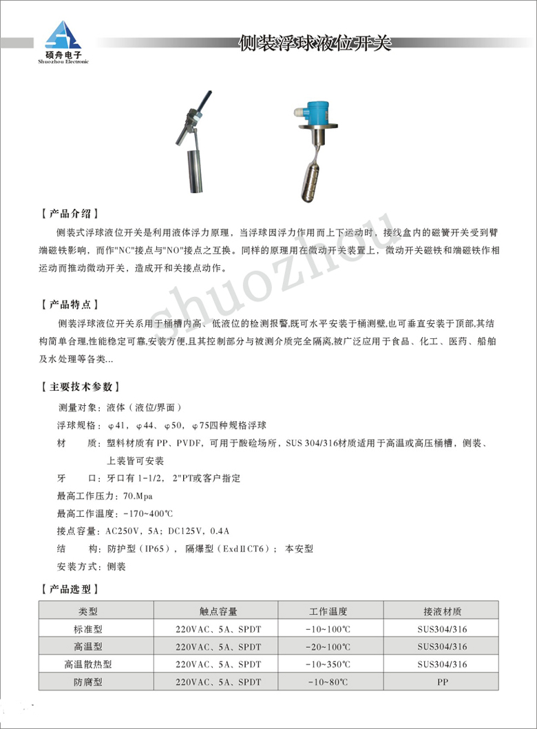 侧装浮球液位开关