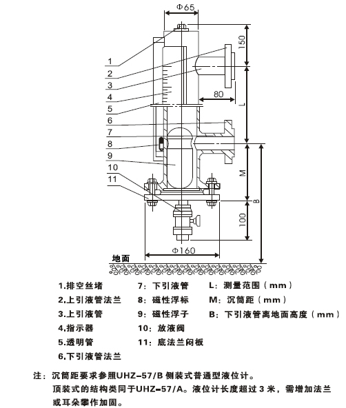 3.液位计主要部件(本体)与介质直接接触的材料是采用不锈钢或其他材料制作,指示部件不与介质接触,因此对装有易燃、易爆、有毒、有腐蚀性介质的容器,使用该液位计测量稳定。
