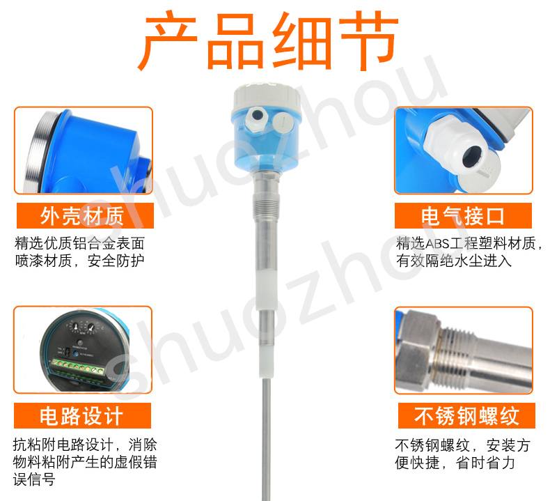 ◇SZSP 型电子线路采用了抗粘附电路,可以在探测真实物位的同时减少粘附和悬挂在探头周围的假物位信号影响。