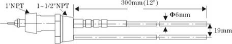 电极应比容器壁上的积料厚度长出2"。如用户需要,我们可以提供液介质为Teflon