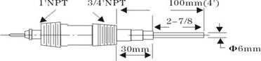 注:垂直安装时,探头总长S大于或等于控制点位置