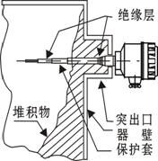 3)在测粉末和颗粒装物料时,可以水平或垂直安装,但探头穿过容器壁时,保护