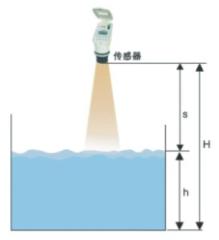 超声传感器在微处理器的控制下.发射和接收超声波.并由超声波在空中的传播时间t来计算超声传感器与被测物之间的距高s, 由于声波在空中传播的速度c是一定的,则根据: s=ct/2,可计算出s, 又因为超声传感器与容器的底部的距离H是一定的. 则被测物的物(液)位h=H-S。